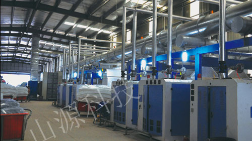 前面部分把毛絨收集起來,而后自動落到下面的毛絨箱內(nèi),當(dāng)達到一定量后人工用耙子勾出即可(比起第一代的人工進入更方便、衛(wèi)生)。沒有了毛絨的煙霧再通過第二級大面積的等離子電場,將油煙收集凈化。既能回收工業(yè)油,又能替代了傳統(tǒng)上每臺單機用一臺小風(fēng)機和集塵袋,使得燙光機節(jié)約了人工,又可以至少節(jié)約50%以上的電能(在不同的流程中可以采用單機自動風(fēng)閥變頻控制主風(fēng)機頻率,解決機臺開多開少時主風(fēng)機能耗的浪費)。并使含塵空氣凈化,達到排放標(biāo)準(zhǔn)。